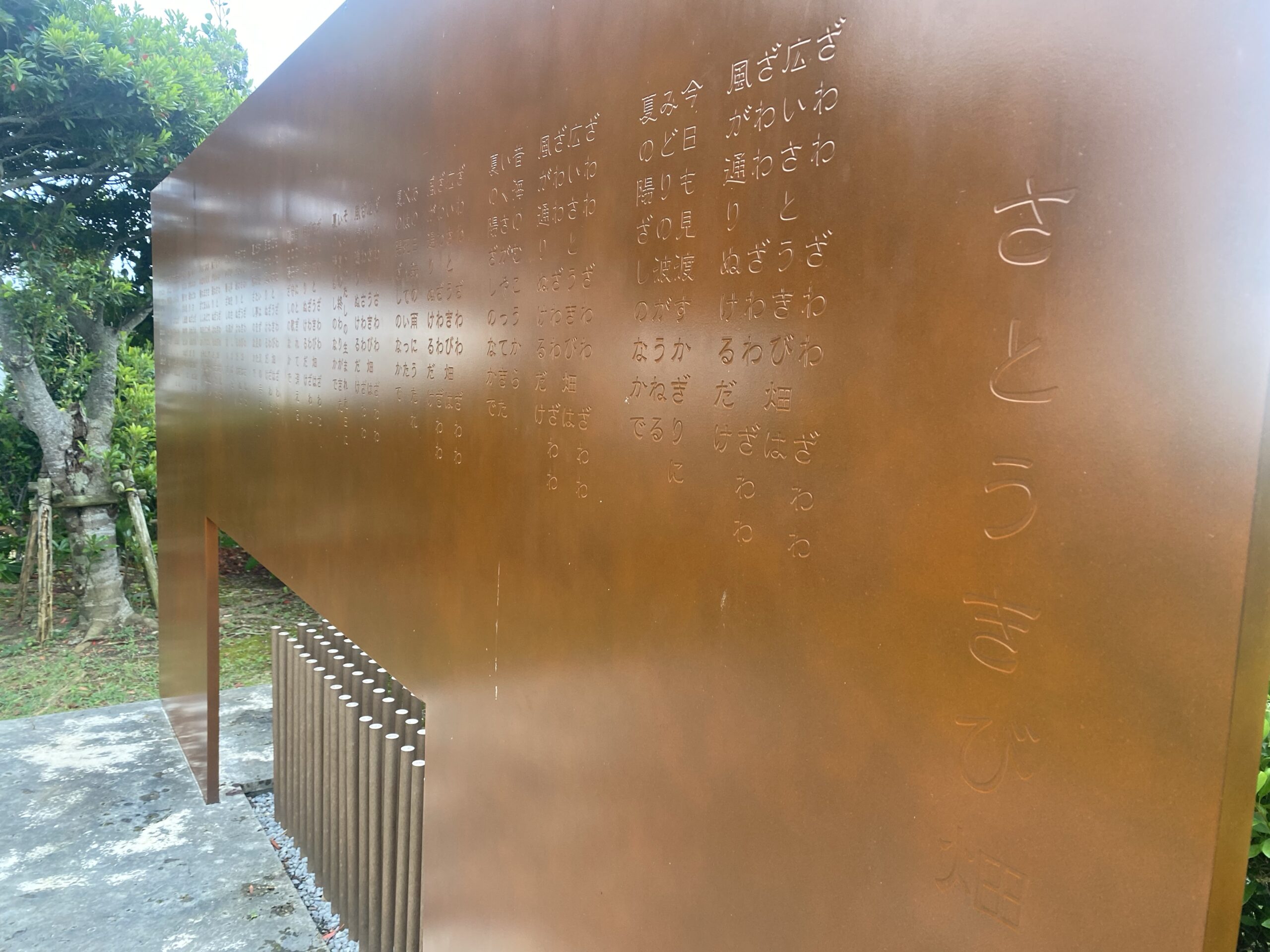 歴史・文化 「さとうきび畑」歌碑広場 2025.10.05 2025.12.25 歴史・文化 森山良子の歌でよく知られている「さとうきび畑」の歌碑です。 ツインズロッジから徒歩16分。 Post Share Hatena Line RSS feedly Pin it note 記事のタイトルとURLをコピーする マックスバリュー座喜味店 前の記事 読谷ファーマーズマーケット ゆんた市場 次の記事 関連記事 やちむんの里 2025.10.17 座喜味城跡 2025.10.07 世界遺産座喜味城跡 ユンタンザミュージアム 2025.10.07 コメント コメント ( 0 ) トラックバック ( 0 ) この記事へのコメントはありません。 この記事へのトラックバックはありません。 トラックバックURL 返信をキャンセルする。 名前(例:山田 太郎) ( 必須 ) E-MAIL ( 必須 ) - 公開されません - URL コメントを書く